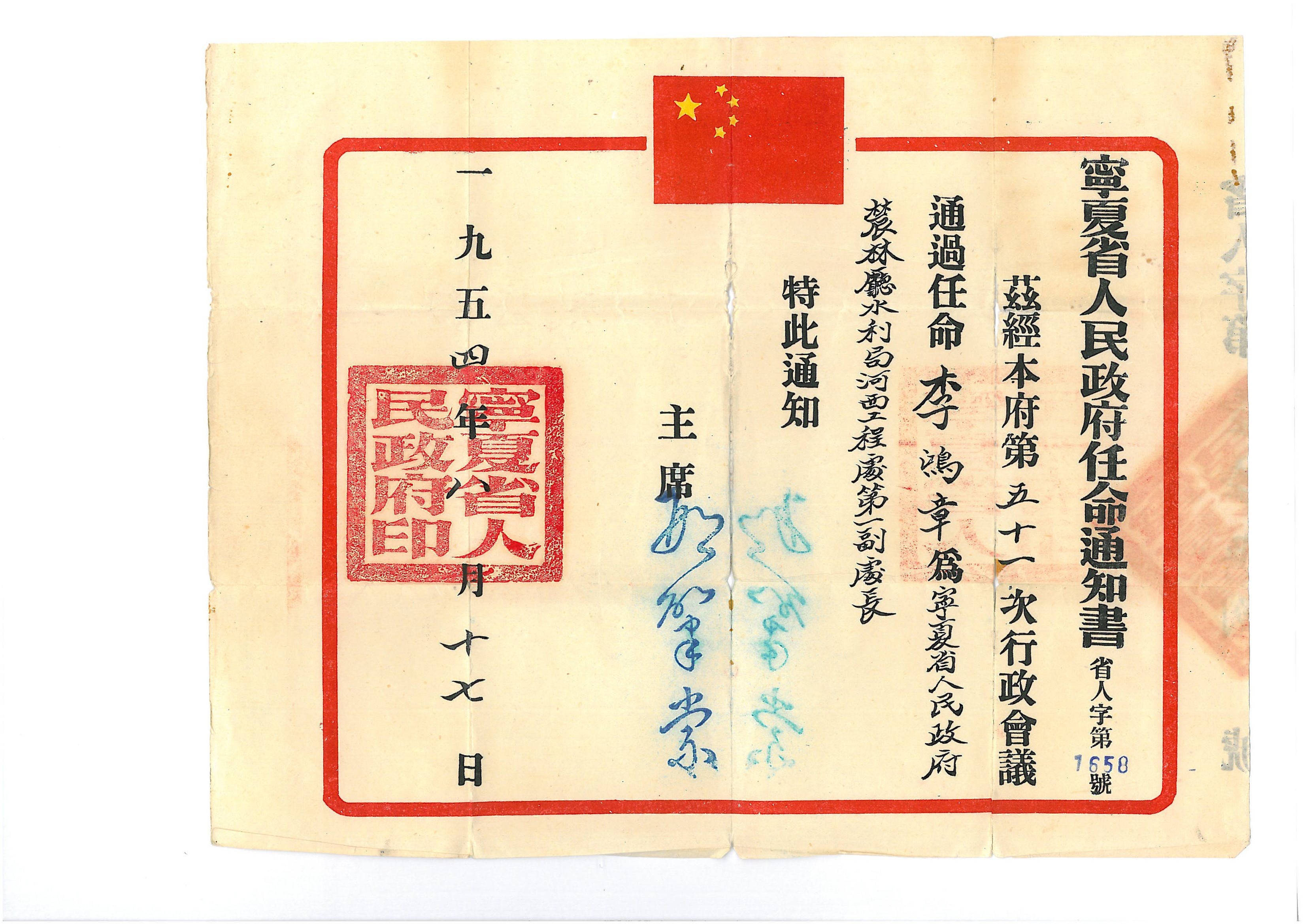 李鸿章任命书1954年